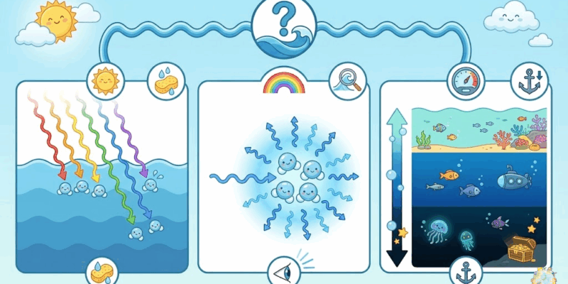 みんなは海に行ったことがあるかな?沖縄の美しい海を見たとき、「どうして海はこんなに青いんだろう?」って不思議に思ったことはないかな?海の水をコップに入れてみると透明なのに、海全体を見ると青く見える。これってとっても不思議だよね!